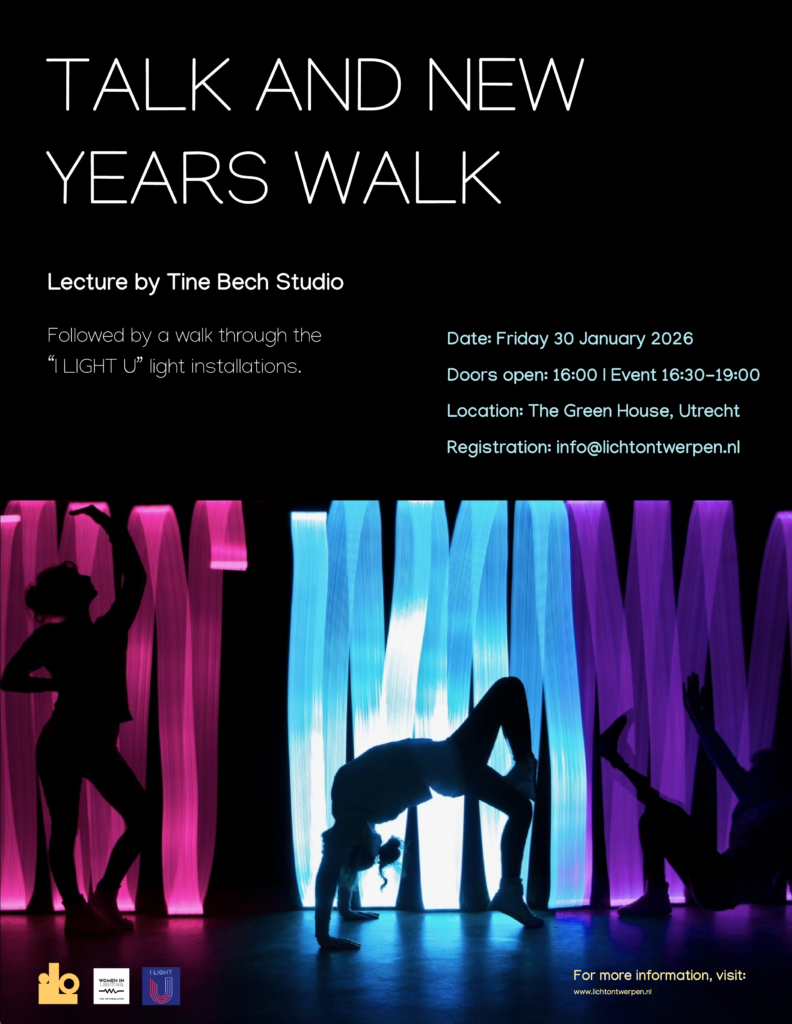 Op 30 Januari organiseren Instituut Lichtontwerpen & Women in Lighting NL weer een nieuwjaarsbijeenkomst v.a. 16:00 uur in The Greenhouse in Utrecht. Elkaar ontmoeten, naar een presentatie luisteren van een van de deelnemende kunstenaars en samen de lichtroute wandelen met de curator. Een beter begin van het nieuwe jaar kunnen we niet wensen!