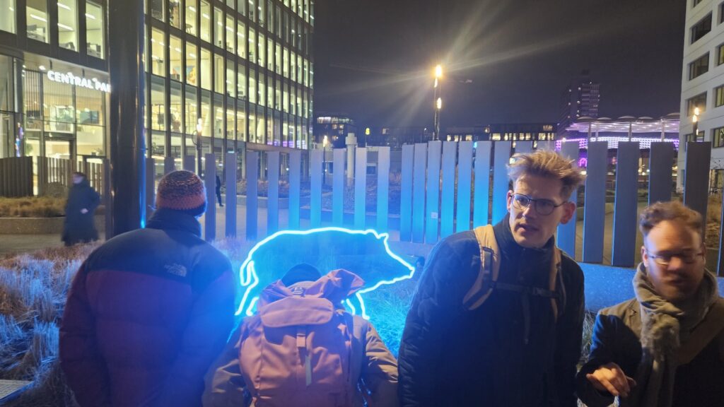 After the talk, we gathered outside and led by Bastiaan Schoof, curator of I Light U, we walked past the twelve artworks.