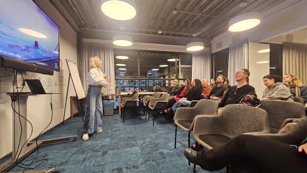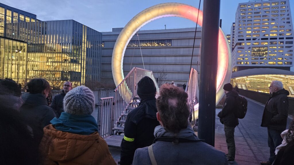 A spot right in the middle of the I Light U route, making it the perfect location to get together, listen to a talk and then go for a walk past the artworks of I Light U 2026. It was lovely to see everyone hanging on every word during the talk by Tine Bech, a light artist with a piece on the I Light U route.